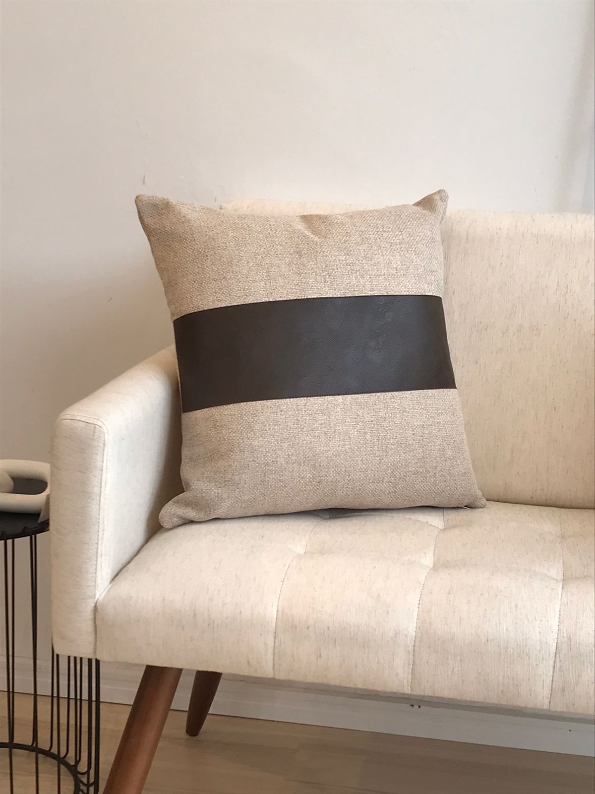 Capa para Almofada de Linho escuro com corino marrom
